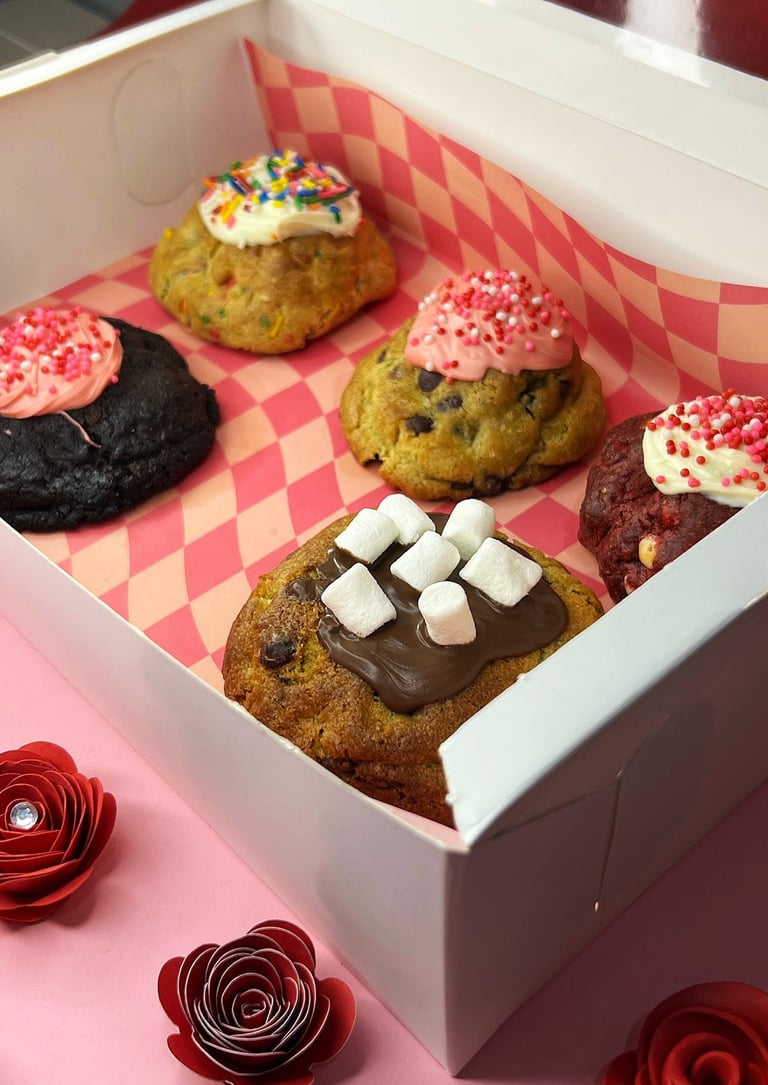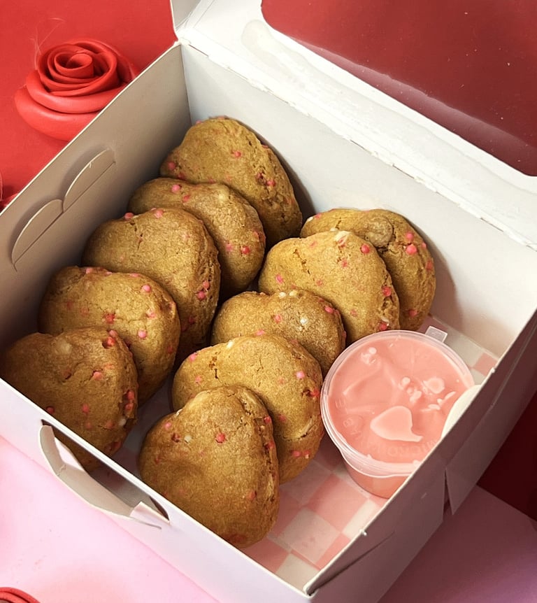 135gr c/u rellenas por dentro y con su topping de San Valentín.